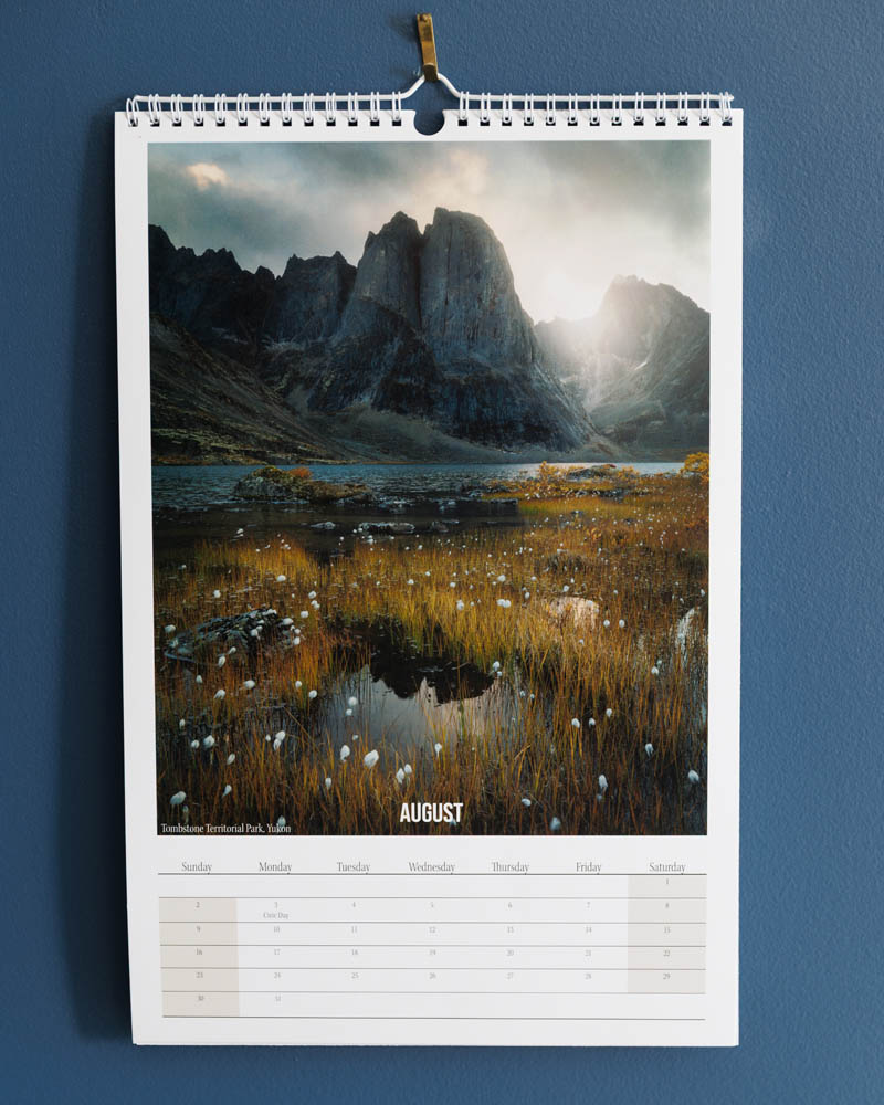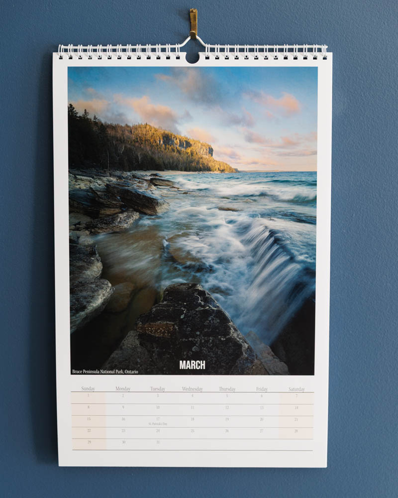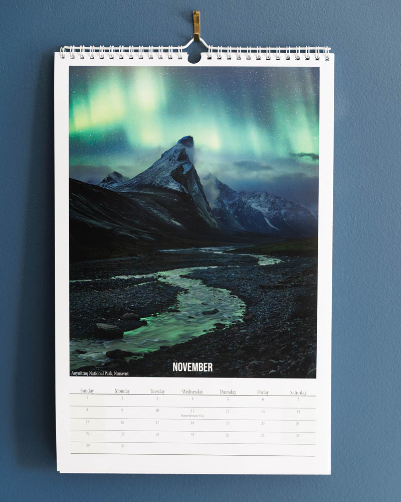With the arrival of my first-born child in April, I found it exceedingly difficult to get out and photograph scenes of interest. Given that my “calendar count” wasn’t increasing through the year, I decided to do something a bit different. For the 2026 year, I’ve decided to change format and use portrait orientation images. I’ve captured many images in this format over the last several years, and while many would be great calendar candidates, none fit the horizontal orientation format. Changing to a portrait orientation has allowed me to capitalize on an array of images which deserve to be in the calendar, but never had the opportunity. As a result, this calendar includes images from several incredible locations including Alberta, Ontario, Yukon, Nunavut, and Arizona.